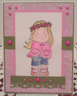 I needed a Get Well card, so I went with the bees. If you click the pic, you can see the honeycomb embossing on the yellow circle. It was done using Fiskars Embossing plates and the Cuttlebug. I stamped the jar, lid and bees with black StazOn, and watercolored them. The little wings are colored with glitter pen to make them sparkle. I did the same with the BG paper. I couldn't resist using the little Bee button on the sentiment...it just fit there so perfectly. I took a liberty and put a little corner punch in to even things out. This was actually a fun sketch to do! Be sure to check out Clear Dollar Stamps as they have this set on sale thru Monday for 30% off! You will love it as much as I do!